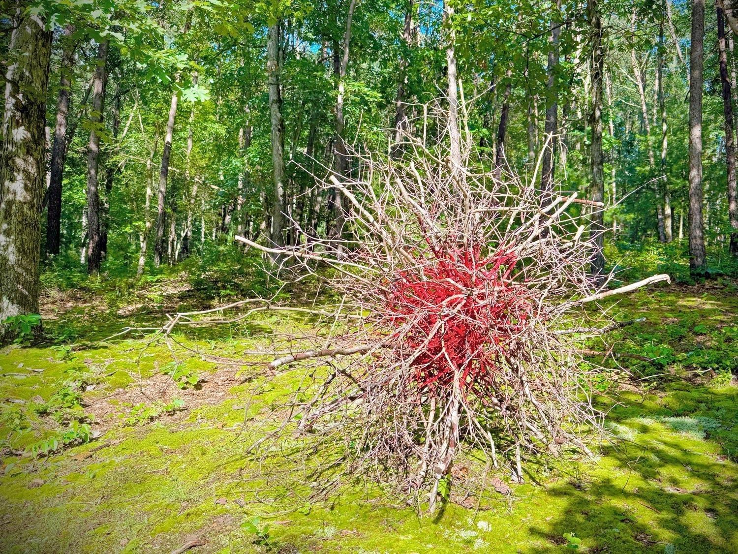 Sculpture with foraged natural elements at a woodland sculpture trail, Harpers Ferry, WV