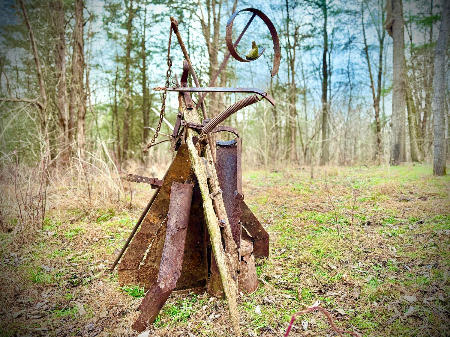 Sculpture from abandoned farm equipment at a woodland sculpture trail, Harpers Ferry, WV